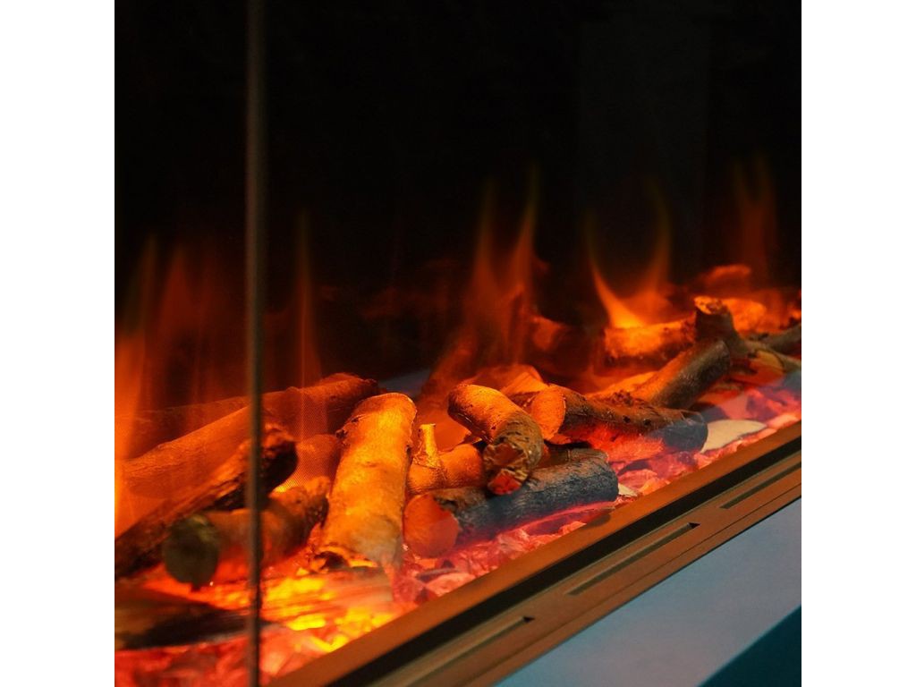 - Actief gloeiend vuurbed van sintels met vijf helderheidsinstellingen en een keuze uit dertien verschillende kleuren die ook instelbaar zijn in continu wisselende cyclus.
