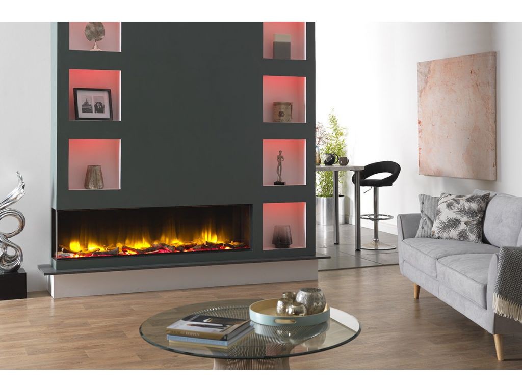 Het design biedt eindeloze mogelijkheden, waardoor de haarden de centrale plaats van het interieur innemen door ze in te bouwen in boekenkasten, T.V. en audiomeubilair of strakke wandunits. De optionele extra LED sfeerverlichtingstrips tot wel 6 meter lengte zijn bestuurbaar via de afstandbediening van de haard en kunnen ingepast worden naar je eigen idee en in je ontwerp.