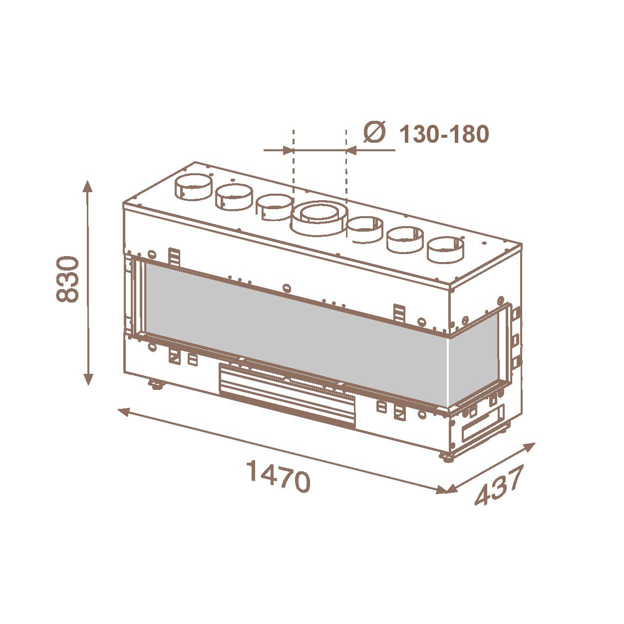 De Athina (Hoek rechts) 1450 van Thermozel is een gas inbouwhaard met een mooi design. De haard heeft een hoogte van 83cm, een breedte van 43.7cm en is 1470cm lang. U heeft hiermee van twee kanten vrij zicht op de vlammen.
