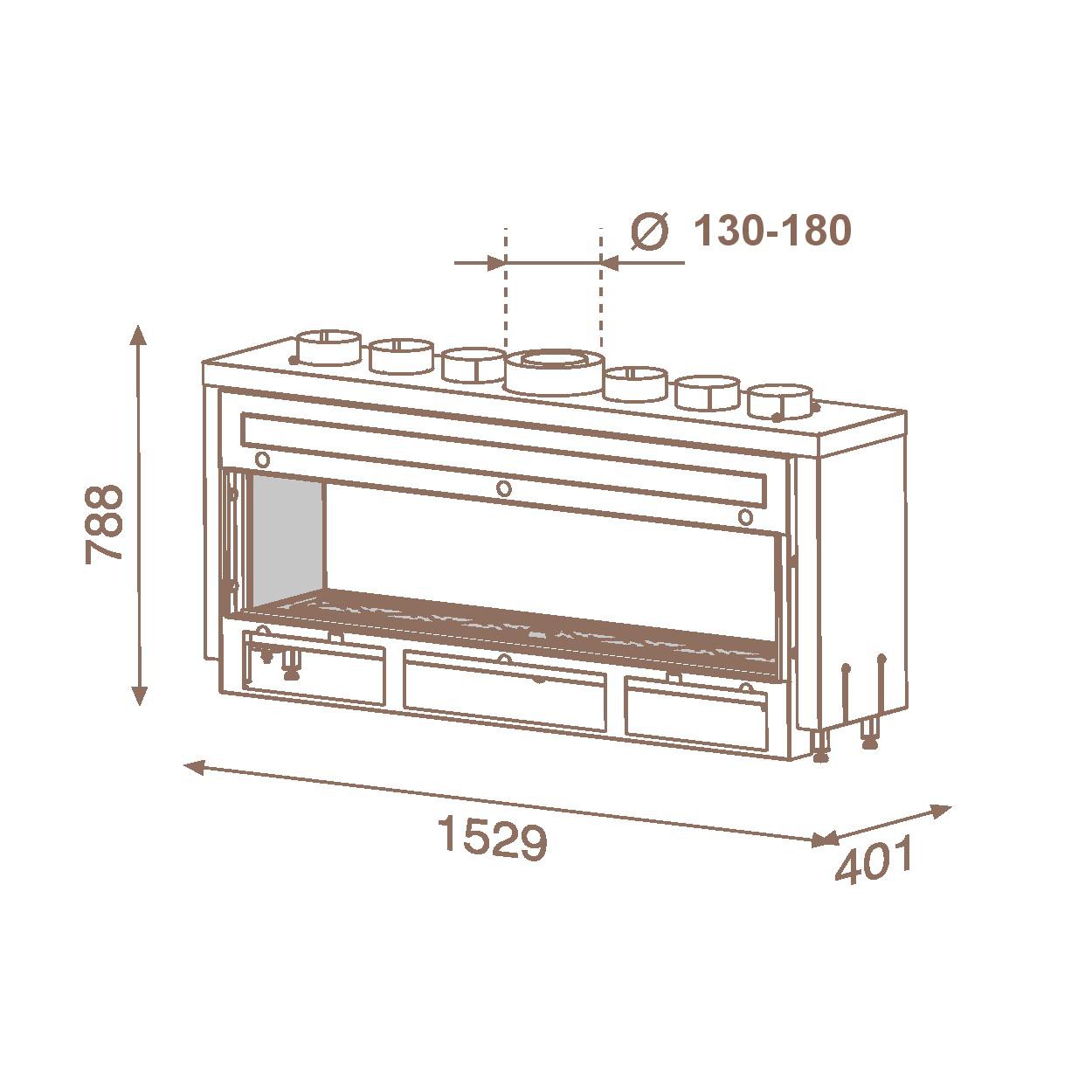 De Athina (Tunnel) 1500 van Thermozel is een gas inbouwhaard met een mooi design. De haard heeft een hoogte van 78.8cm en is 152.9cm breed. U heeft hiermee van twee kanten vrij zicht op de vlammen.
