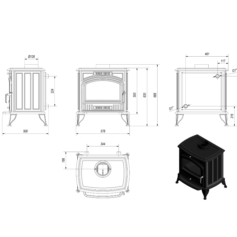 Het formaat van deze houtkachel B 578 H 668 D 490 mm is geschikt voor verschillende soorten ruimtes. maar staat vrij ook prachtig. Kratki k6 met backboiler heeft een nominaal vermogen van 8 kW, zodat uw ruimte verwarmd kan worden. Deze kachel wordt standaard geleverd in een diameter van 130 mm maar als u wenst voor een diameter van 150 dan kan u dat laten weten in de opmerkingen.