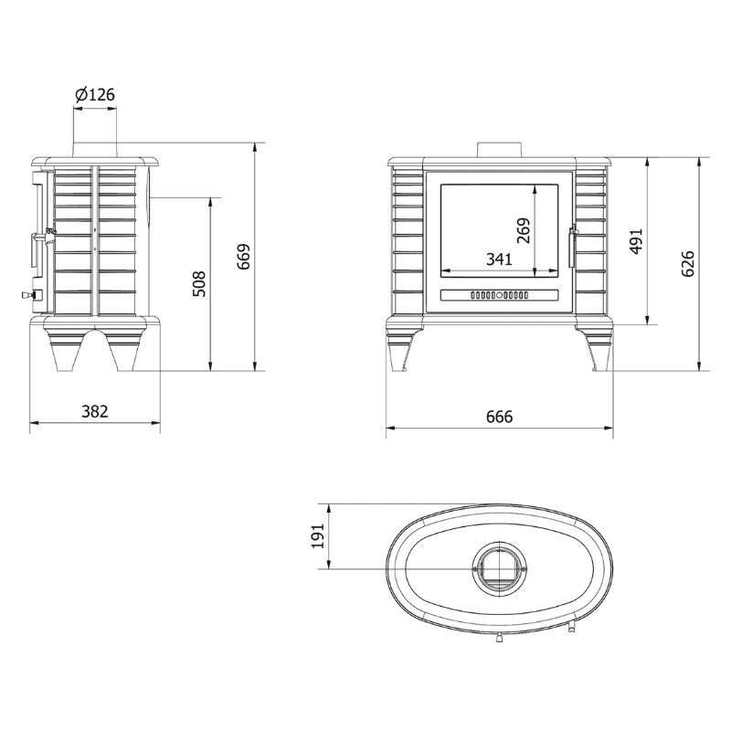 | Kachel afmetingen: | B 666 H 626 D 382 mm |