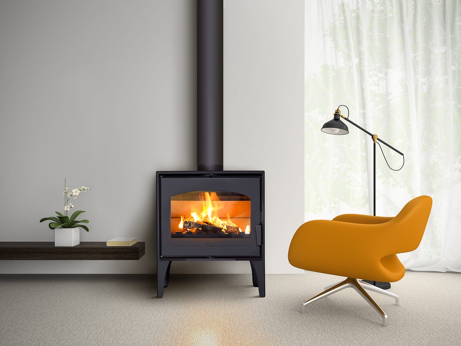 De Lacunza Calpe-kachel is gemaakt van staal en heeft een verbrandingskamer die gemaakt is van vermiculiteplaten. Het is een degelijke kachel die toch een gezellige uitstraling heeft door de boogvorm van het raam. Hierdoor ontstaat ook een mooi zicht op het vuur.