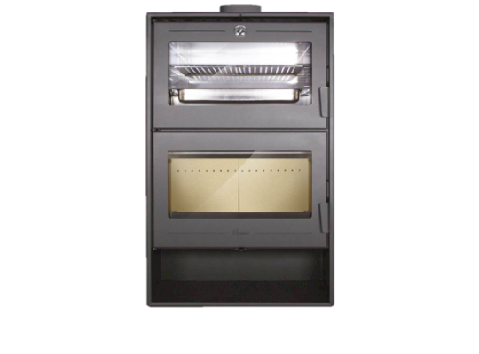 Houtkachel Oslo van het Spaanse merk Lacunza is een stalen houtkachel met ingebouwde oven. De oven met bak en rooster is gemaakt van roestvrijstaal met een afmeting van 700x1100x400 mm. De oven wordt geleverd met een roestvrijstalen braadslede en een rooster dat gebruikt kan worden als grilrooster. De binnenzijde van de verbrandingskamer van de kachel is gemaakt van vermiculiet. Daarnaast is er een dubbele verbrandingsregeling, zodat het glas van de kachel mooi schoon gehouden wordt en er altijd mooi zicht op de vlammen is. Onder de kachel is nog een handige opbergruimte om wat houtblokken in te leggen.